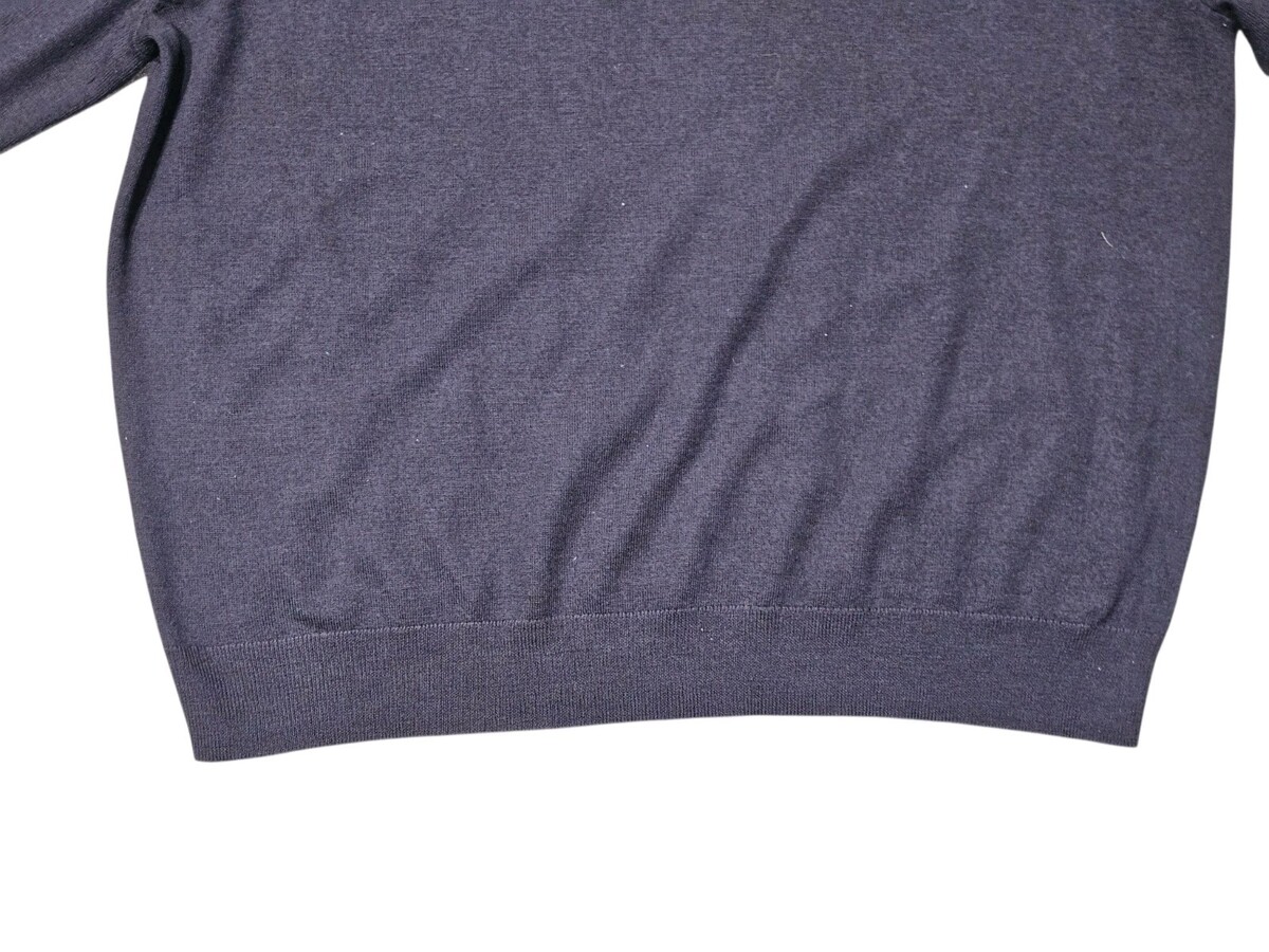 The VTG Stafford 100% Wool Knit Sweater is a classic V-neck pullover sweater in blue, perfect for winter, fall, and spring. This vintage piece is made from tight-knit wool fabric, offering a comfortable fit for the wearer. Suitable for travel, casual wear, or business occasions, this sweater features long sleeves and a solid pattern, making it versatile and stylish for any man's wardrobe. Machine washable for easy care, this sweater is a timeless addition to any collection, ideal for activities like walking, golf, or cross training.