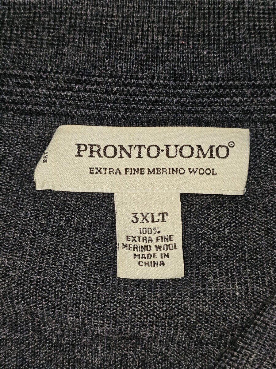 Pronto-Uomo Gray Men’s Sweater 100% Extra Fine Merino Wool Collared Size 3XLT