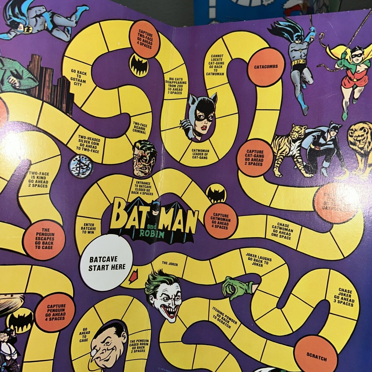Batman game has all four moving pieces, board, and spinner