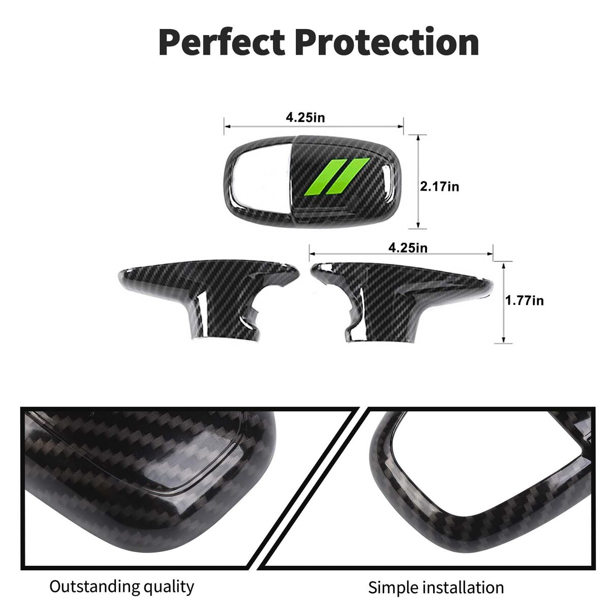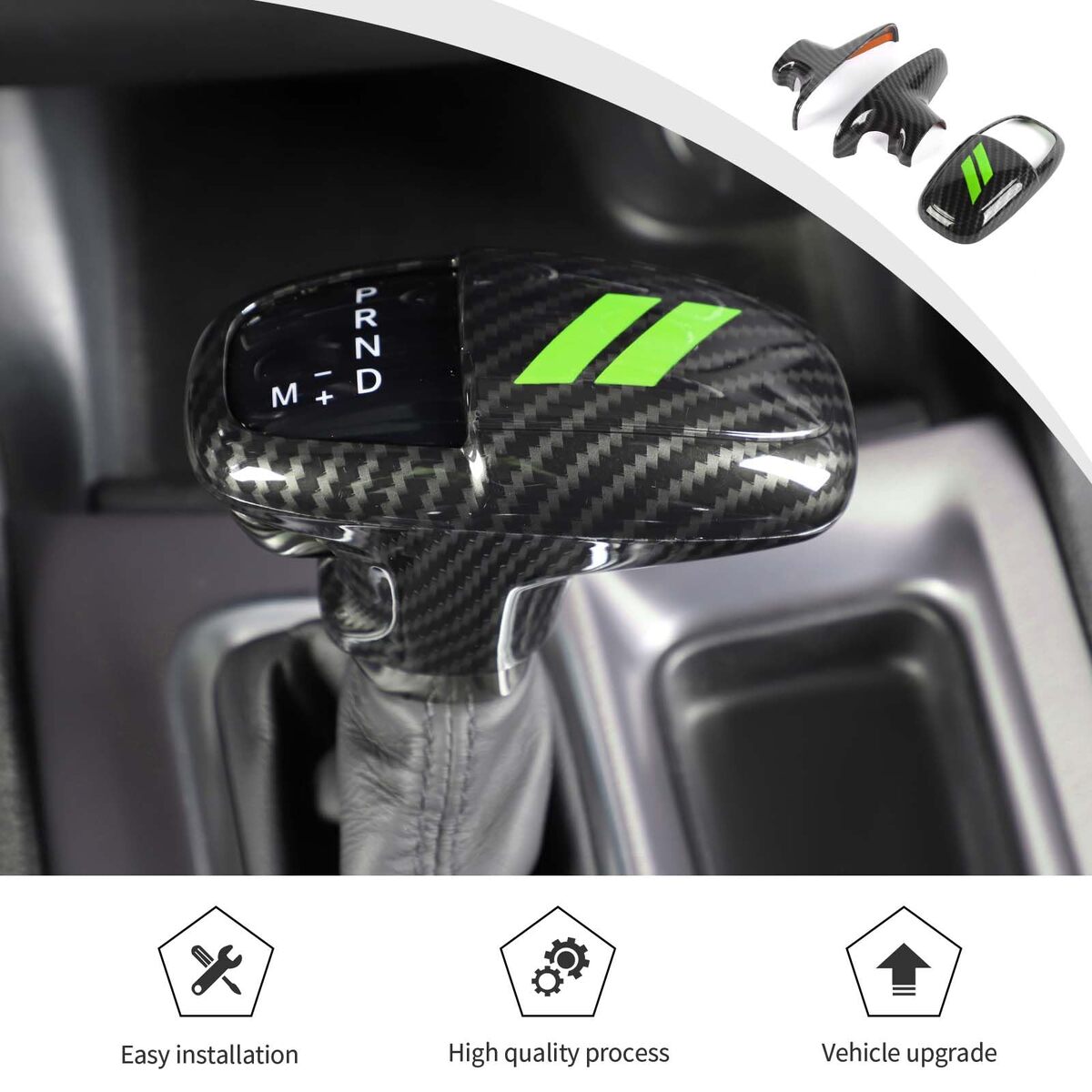 JWWY Green Carbon Fiber Gear Shift Knob Cover 3PCS for Dodge Challenger Charger
