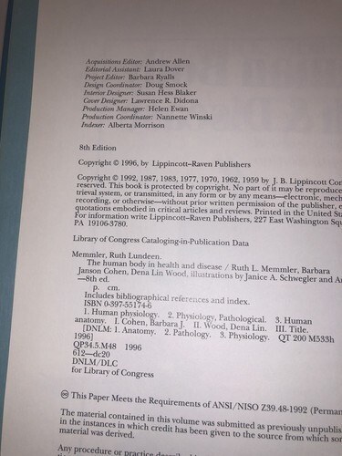 Memmler's the Human Body in Health and Disease Eighth Edition 1996 Vintage Book