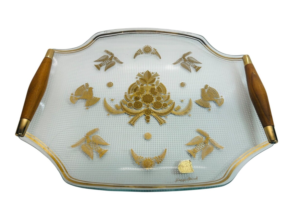 Georges Briand Glass Guild Tray Gold Bird and 48 similar items