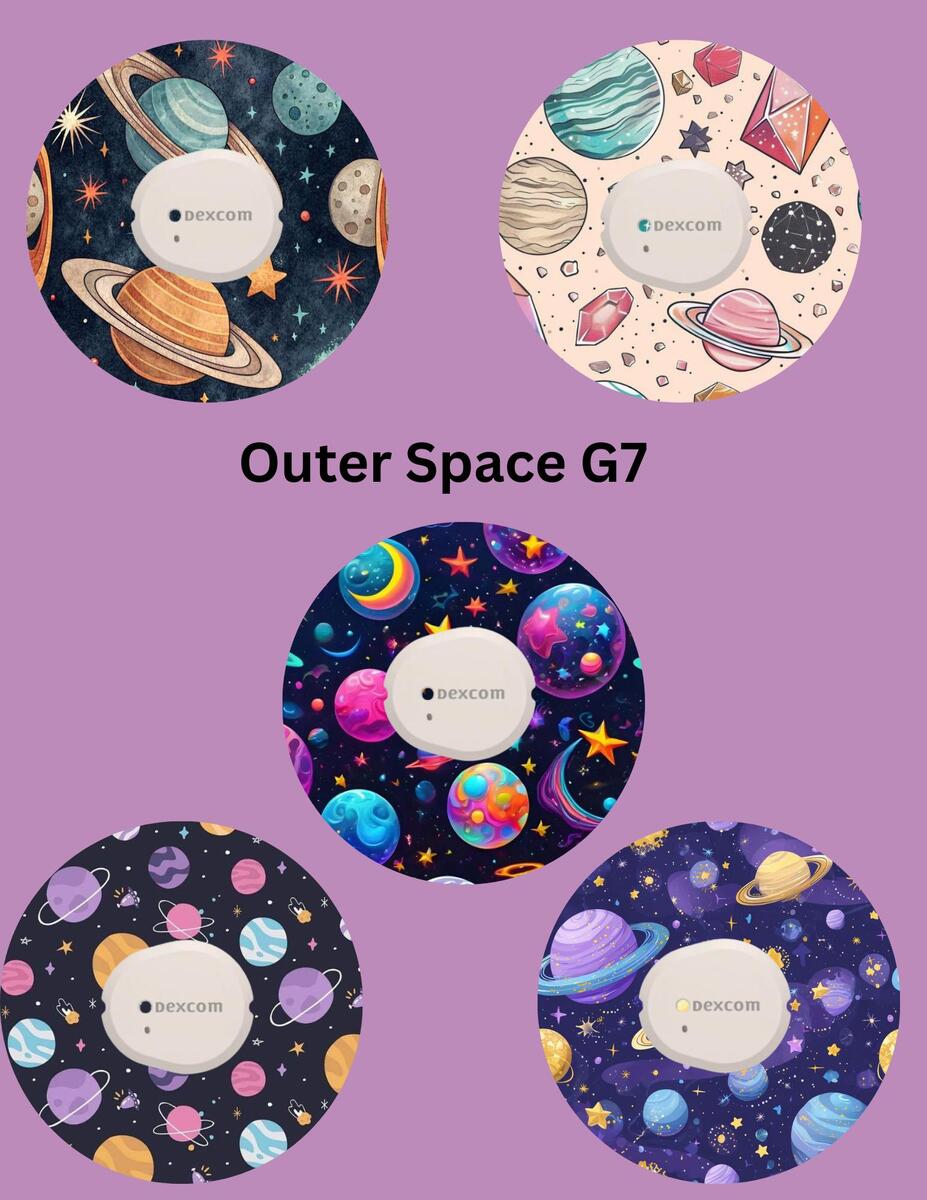 Outer Space CGM Patches: Dexcom G7/Libre/G6/Omnipod, Style Pack of 5