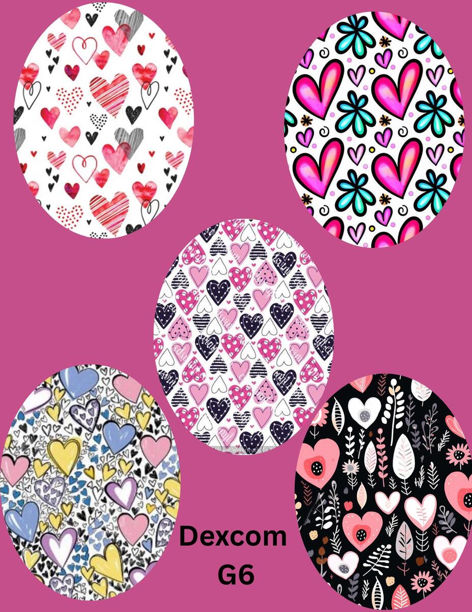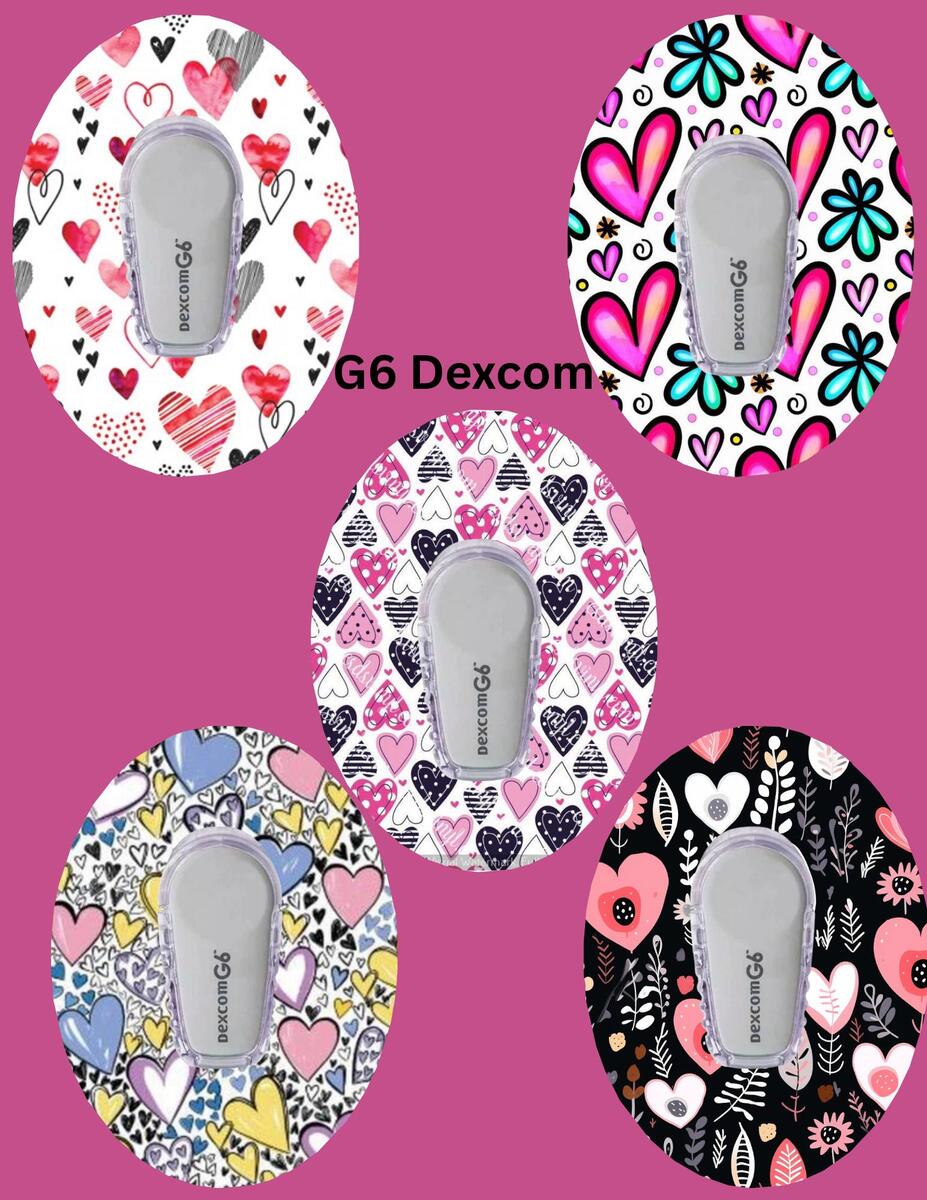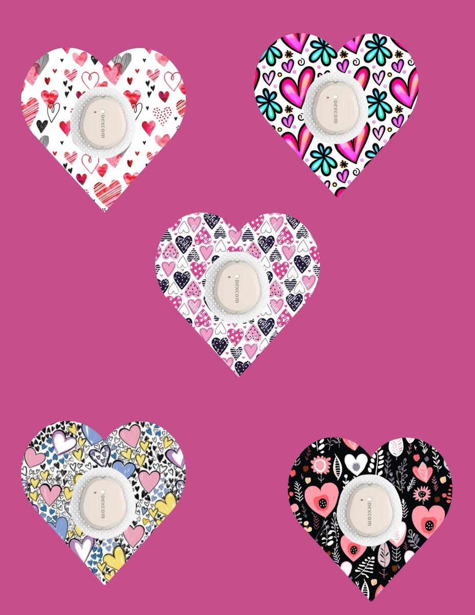 Heart CGM Patches: Dexcom G7/Libre/G6 Cover, Style Pack of 5