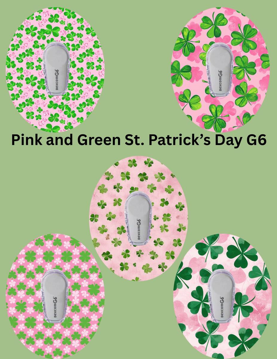 Pink and Green St. Patrick's Day CGM Patches, Dexcom G7, Libre 3, Omnipod Cover,