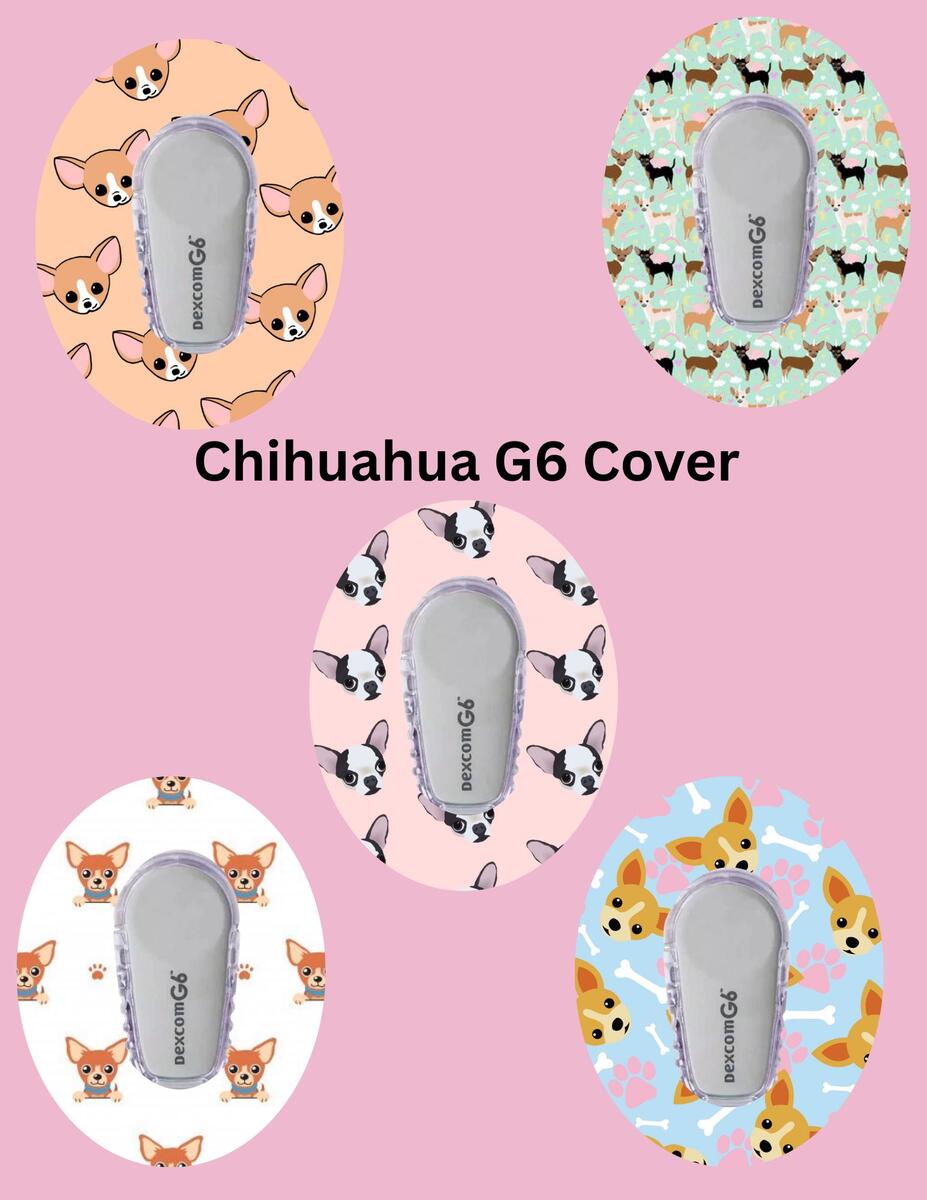 Chihuahua Dog CGM Patches, Dexcom G7, Libre 3, Omnipod Cover, Pack of 5
