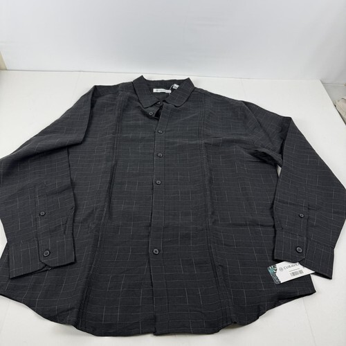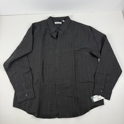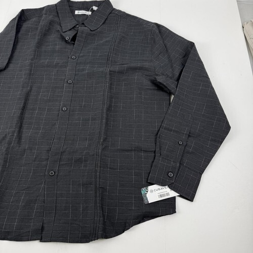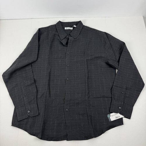 Cubavera Mens Dobby Textured Tuck Panel Long-Sleeve Shirt Quiet Shade Black-XL