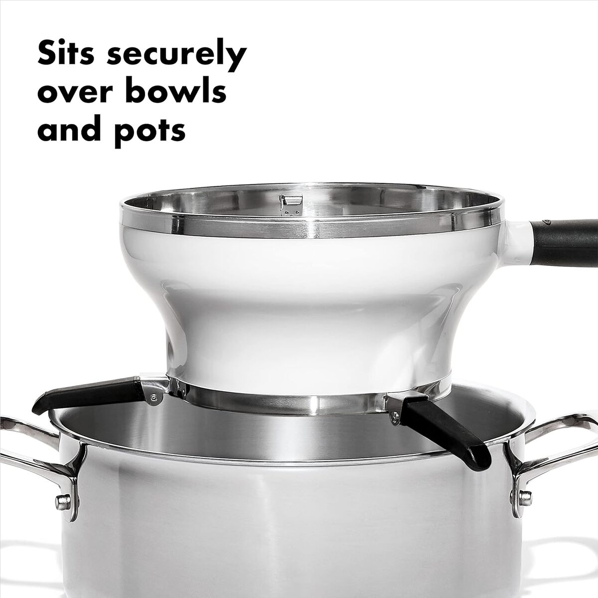 Three non-slip legs securely rest over bowls and pots up to 11 inches in diameter, preventing slipping during use.