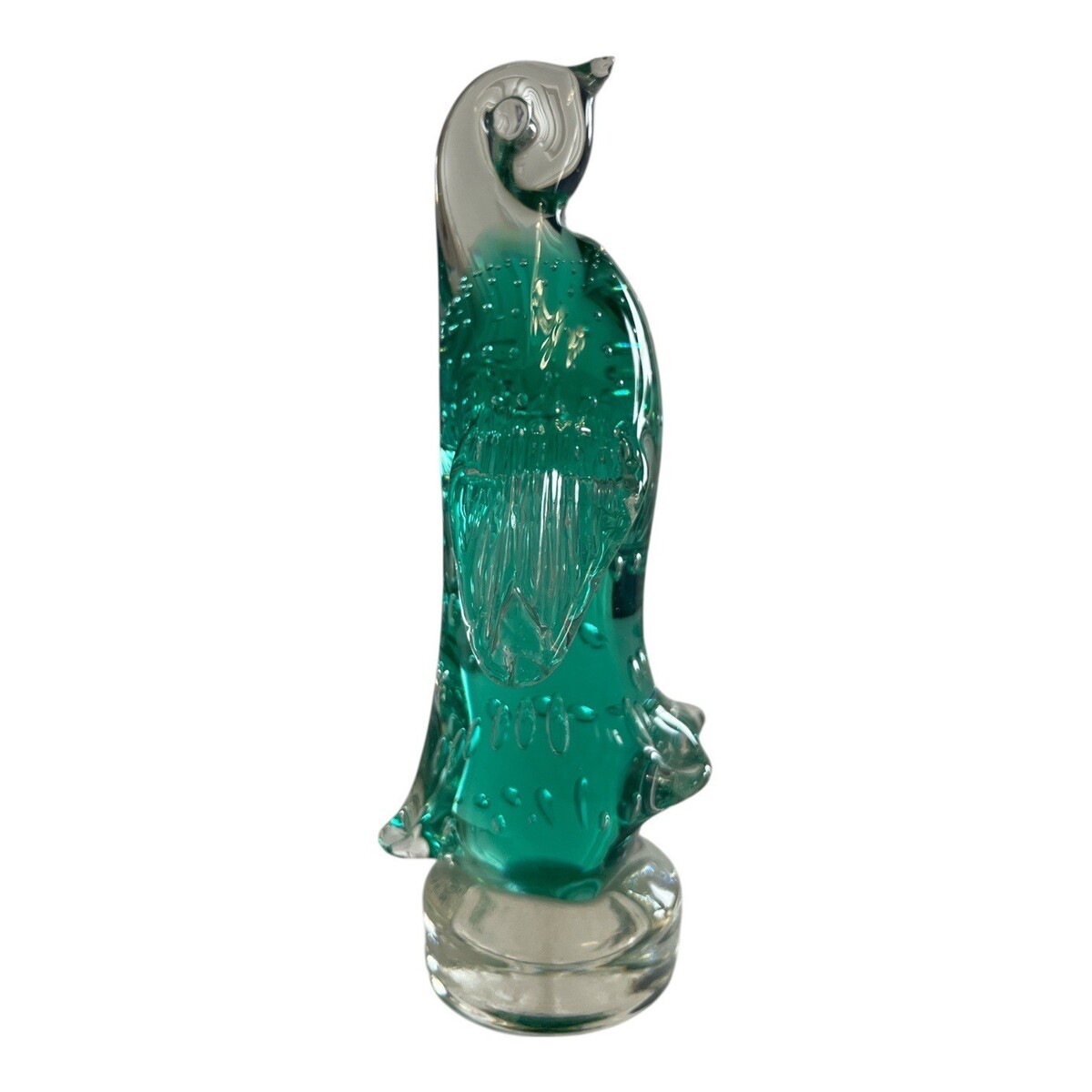 Vintage Art Glass Penguin Figurine Controlled Bubble Green Sculpture
