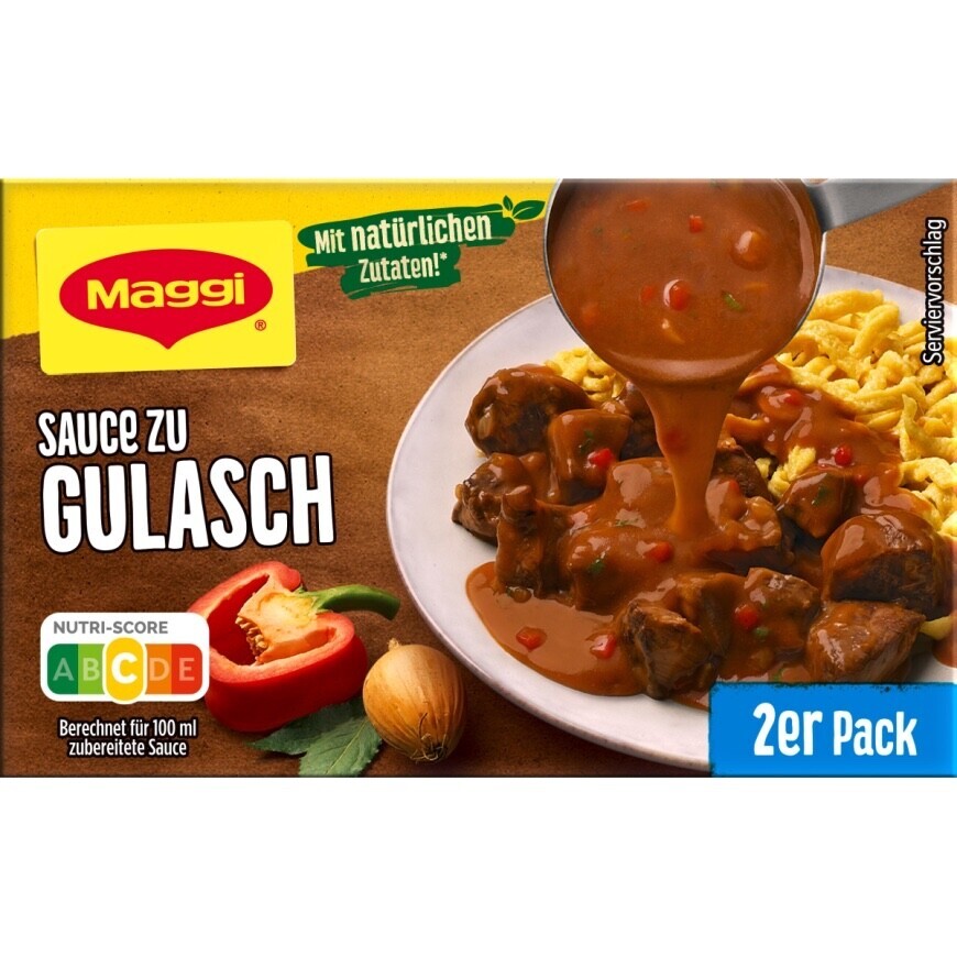 The taste matched Delikatess sauce to goulash Maggi is the taste matched sauce that goes perfectly with goulash, stews, pasta, rice and potatoes. Refine your dish to taste.