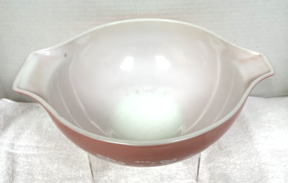 Vintage Pyrex Pink White Gooseberry Design Cinderella Nesting Bowl 4 Quart