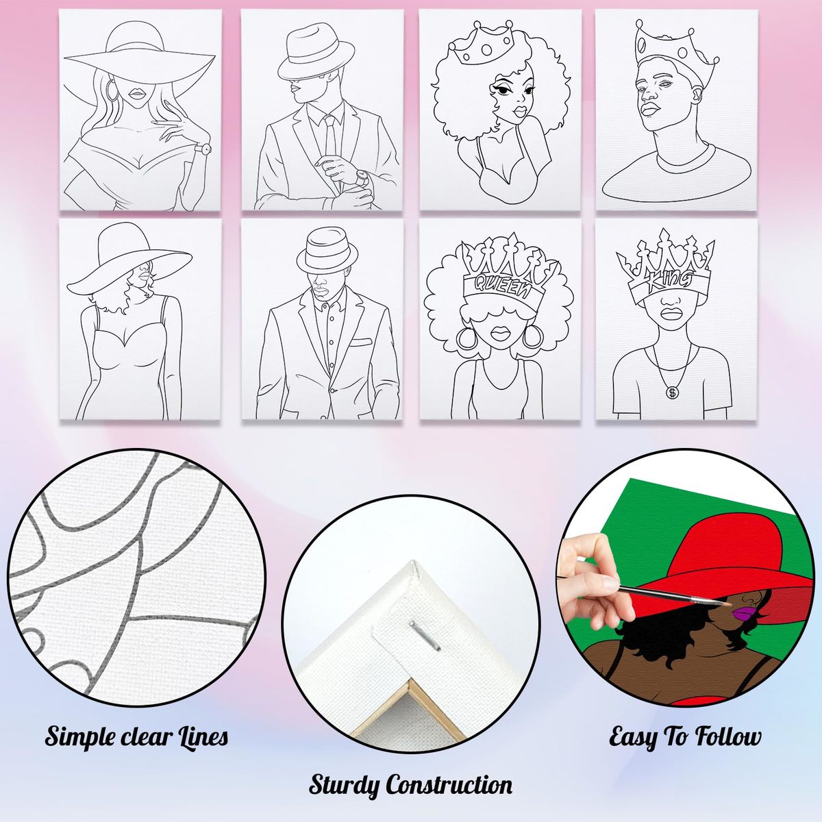 VOCHIC 8-Pack Pre-Drawn Canvas for Painting Adults Sip & Paint Party Supplies DI