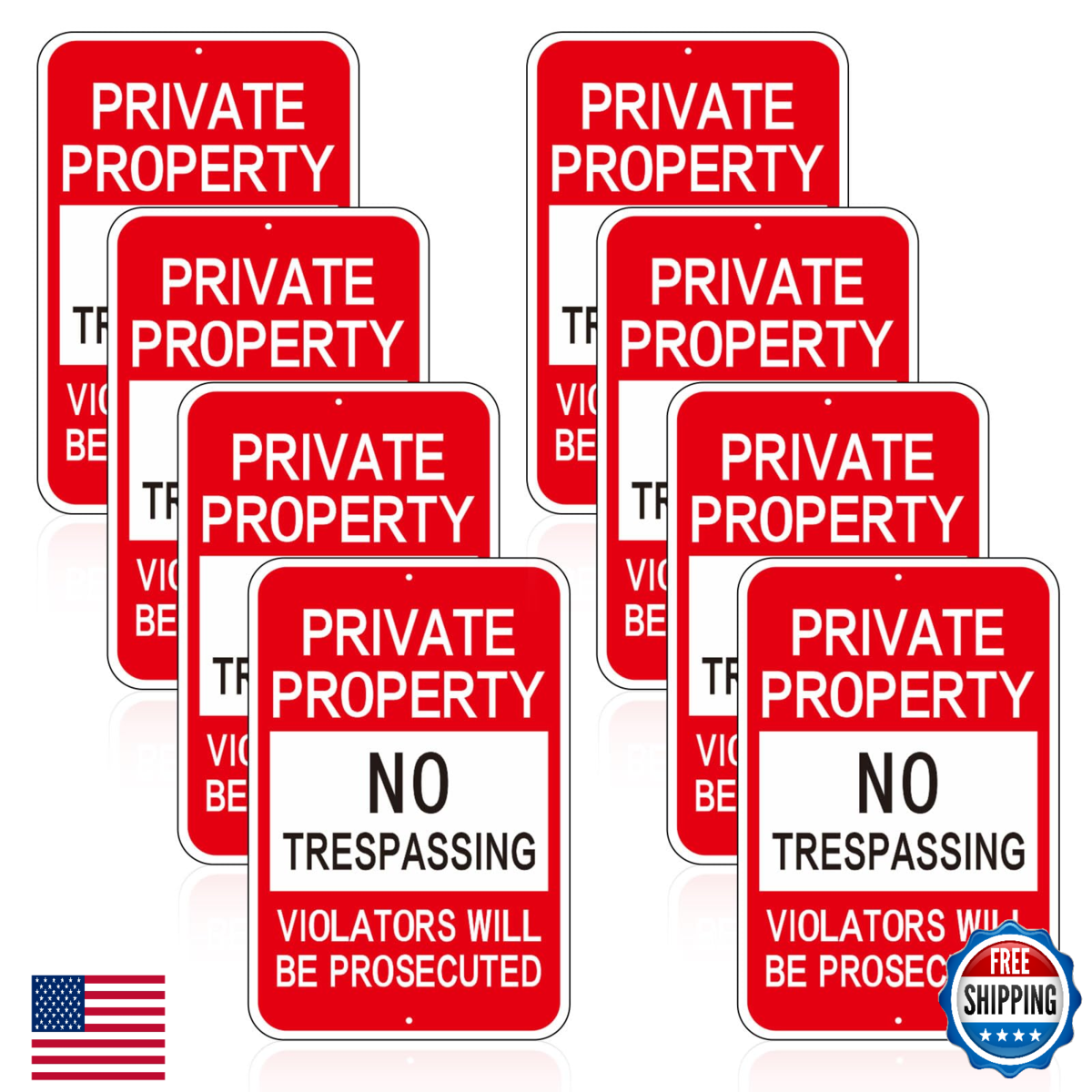 Amylove 8-Pack 12x18" Red Private Property No Trespassing Sign Violators Will Be