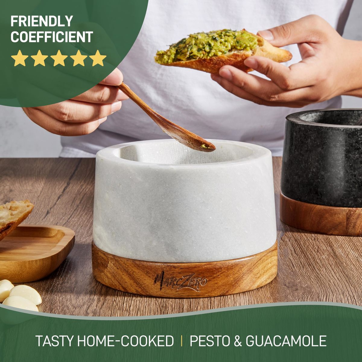 MarcZero 6" Large Granite Mortar & Pestle Set w/ Anti-Scratch Wood Base