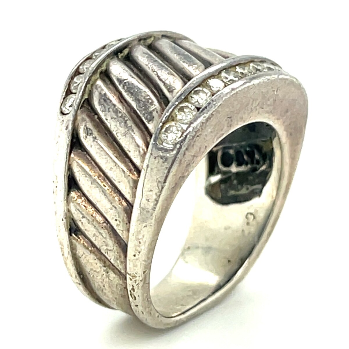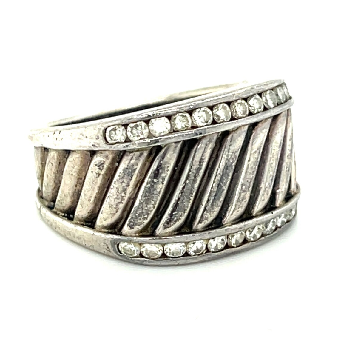 David Yurman Sterling and Diamond Cable Style Cigar Band Ring Sz 5.5 Gorgeous
