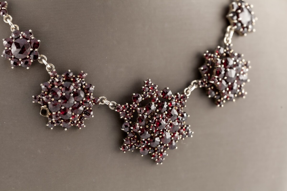 Features Rose-Cut Garnets in Graduated Rosette Configuration