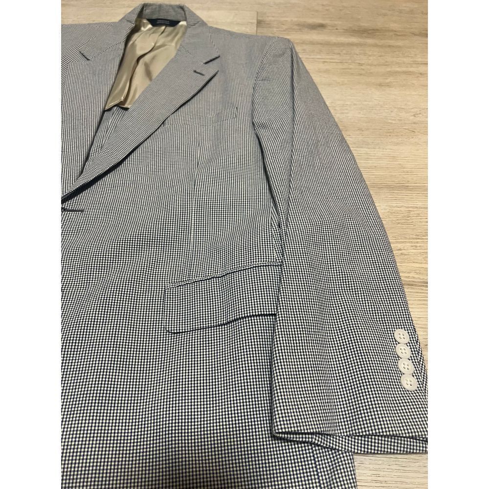 Brooks Brothers Mens Gingham Checkered Blazer Mens 100% Cotton Gray Blue 43R