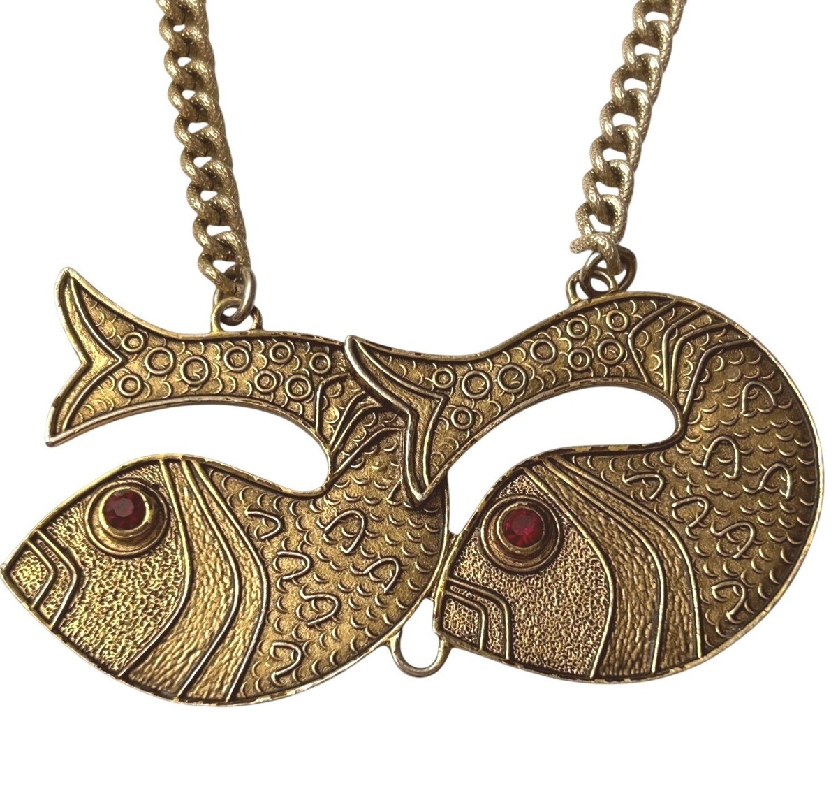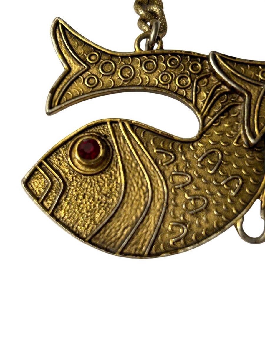 Sarah Coventry Hawaiian Fantasy Fish Pendant Necklace Golden VTG Gift for Pisces