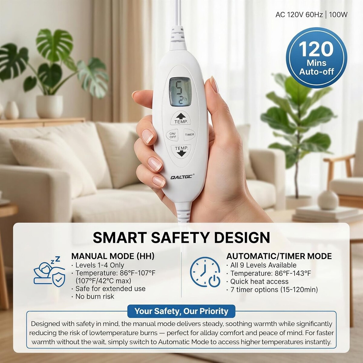 Stay warm and cozy, minimizing the risk of low-temperature burns.