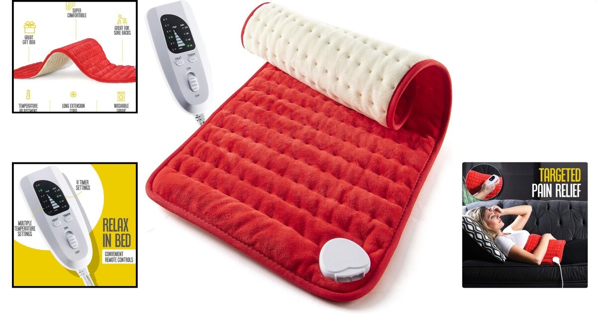 Washable Electric Heating Pad - 24" x 12" for Fast Relief of Cramps & Discomfort