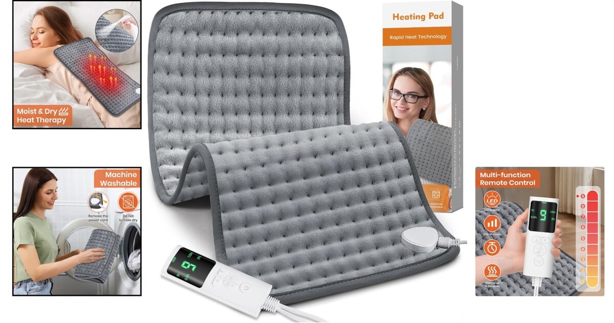 Soft Electric Heating Pad, 9 Heat Levels & Timer - Ideal for Cramps & Aches