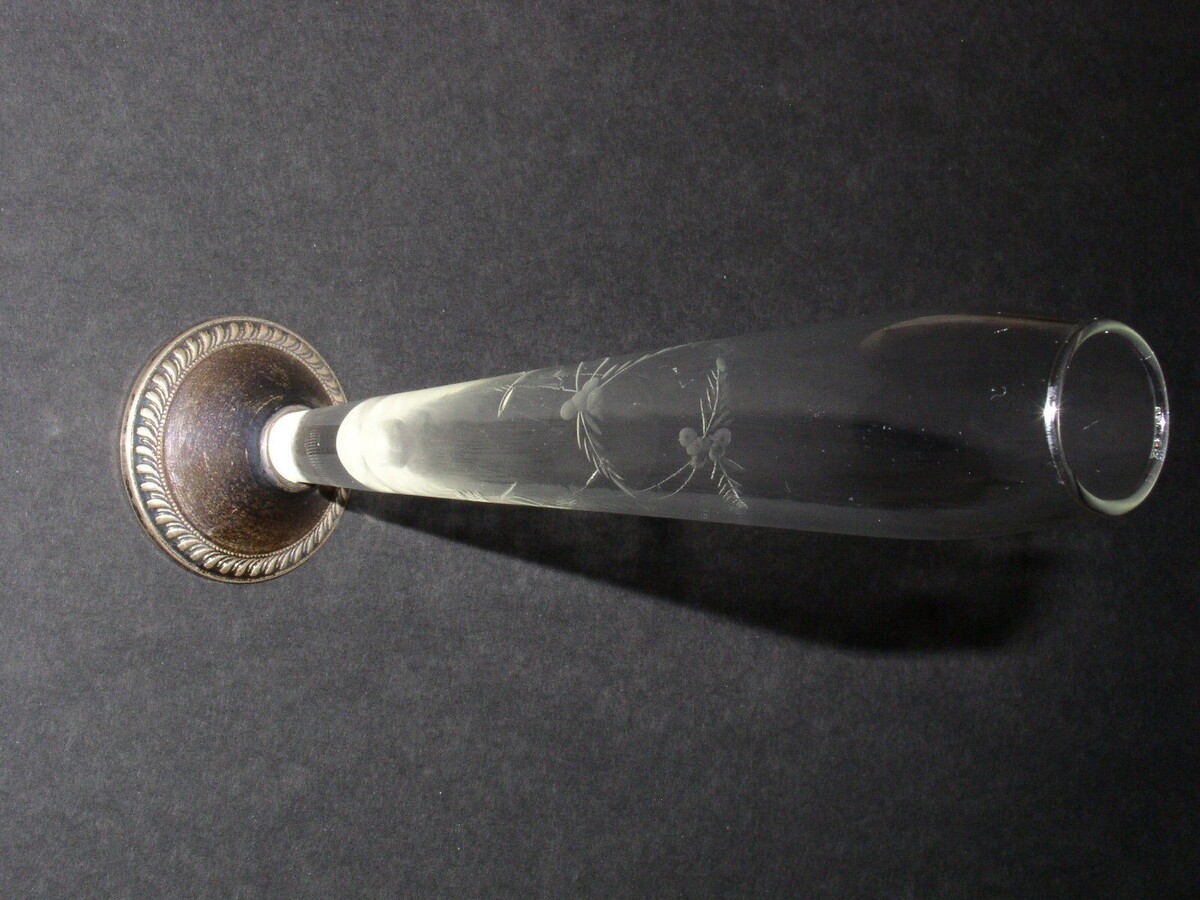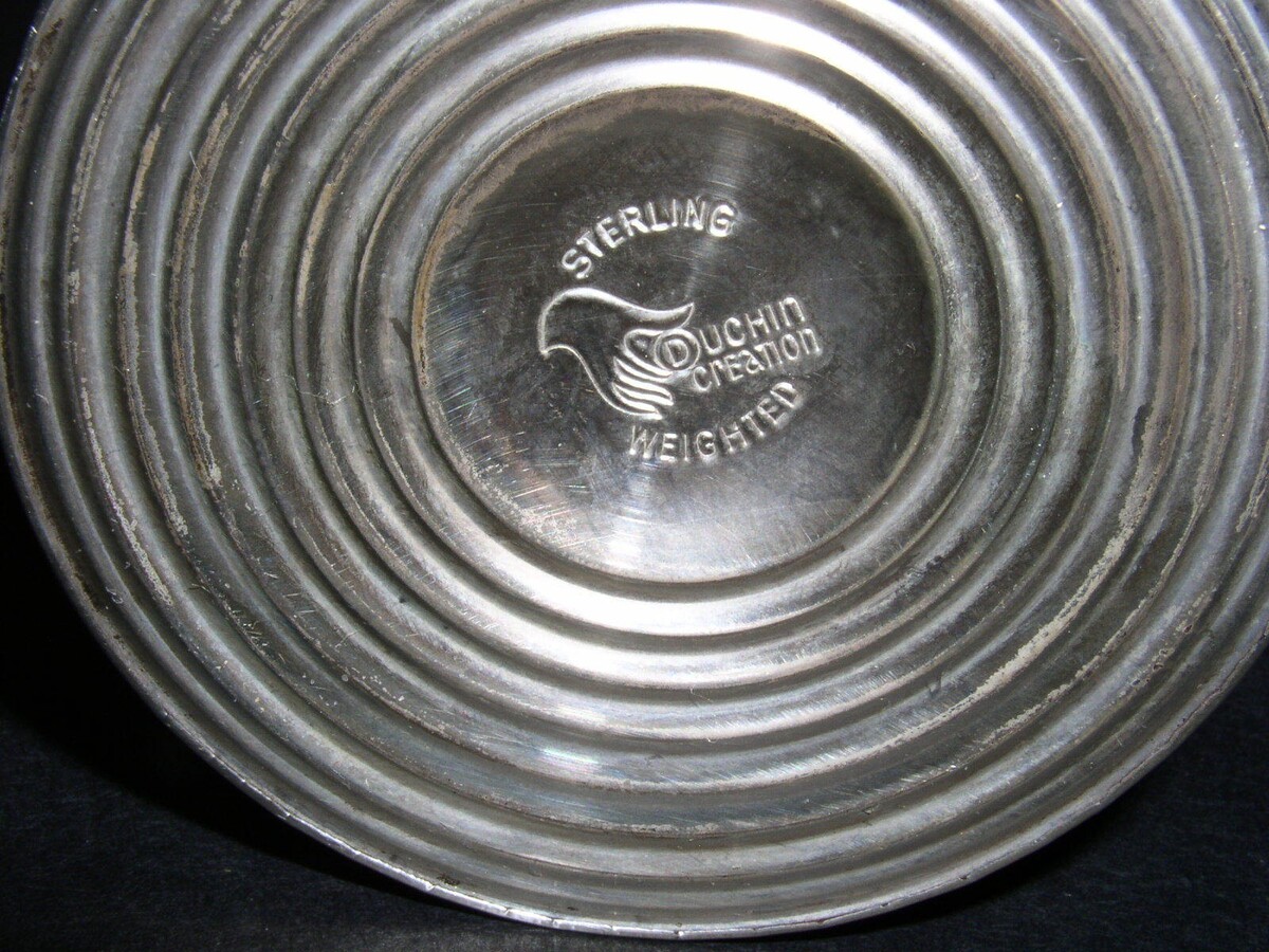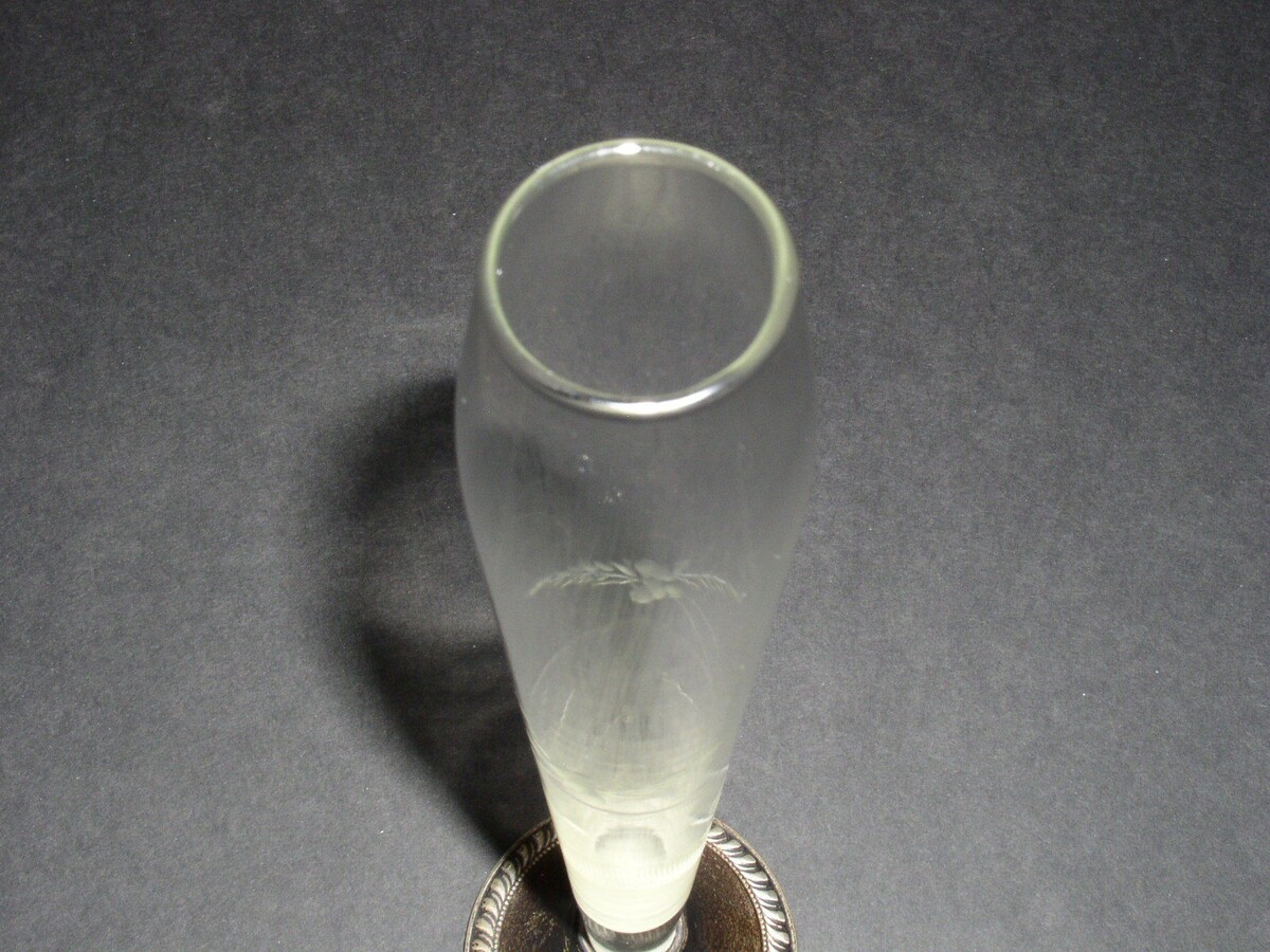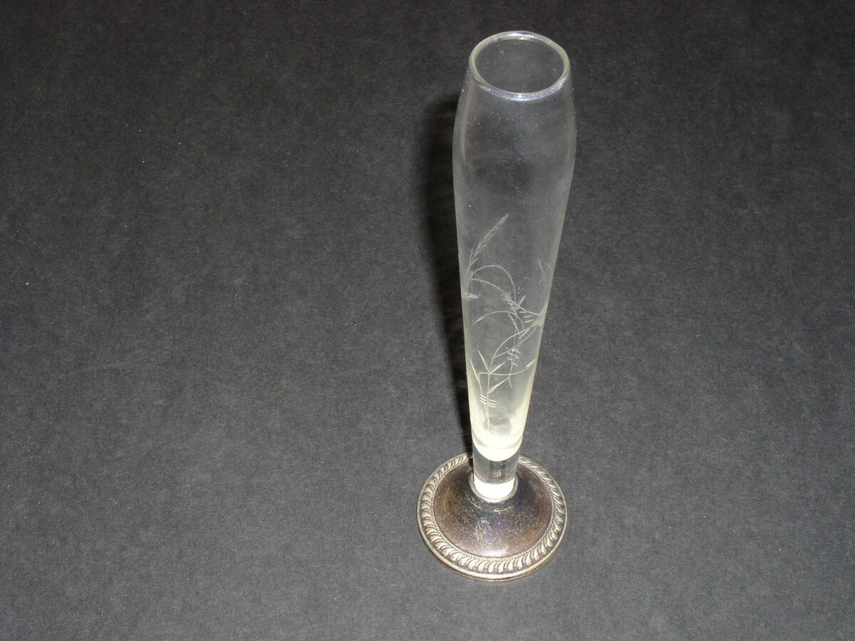 This is a weighted sterling silver bud vase. Meaures 9 3/4" in length from the bottom of the base to the top. Bottom stamped: Duchin Creation.