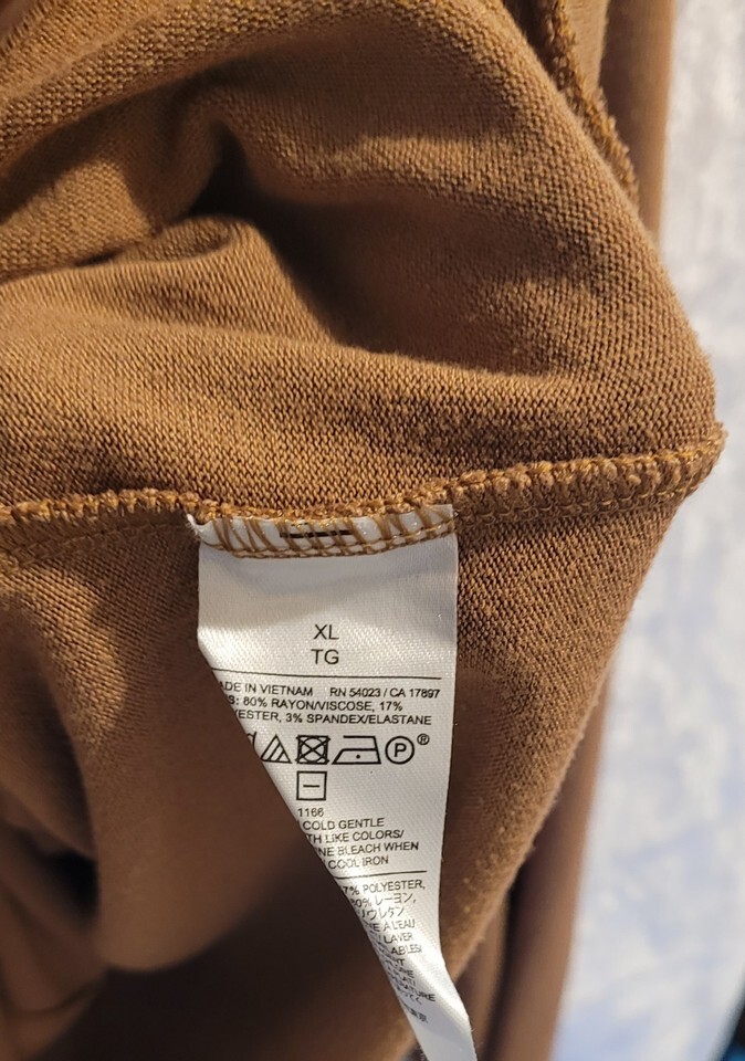This Women's Banana Republic Soft Knit Long Sleeve Top in size X-Large is a versatile and stylish addition to any wardrobe. The solid tan color and round neckline make it easy to pair with a variety of occasions, whether it's for a casual day out or a workwear setting. Made from a blend of polyester and rayon, the knit fabric ensures comfort and breathability. The long sleeves and pullover closure add functionality, while the designer brand touch adds a touch of sophistication. Perfect for all seasons, this blouse is a timeless piece that is sure to become a staple in your closet.