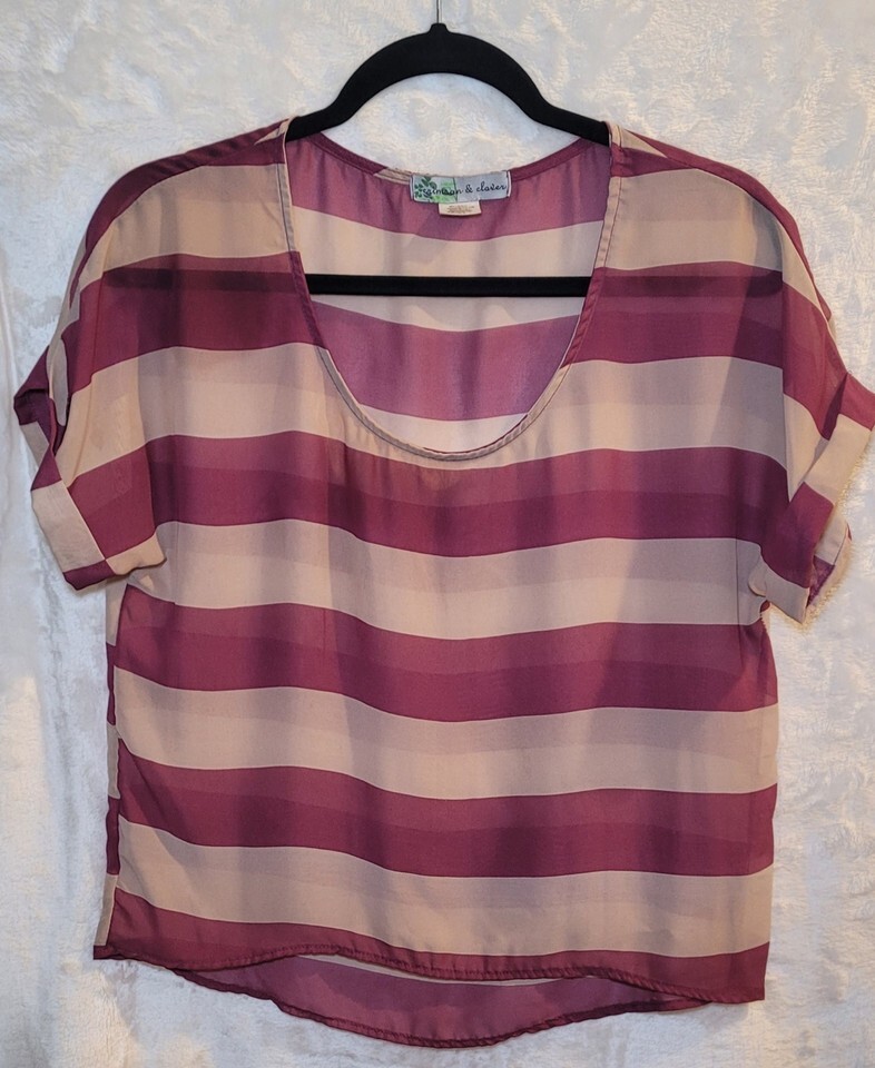 Crimson & Clover Polyester Striped Short Sleeve Blouse Women Size Medium