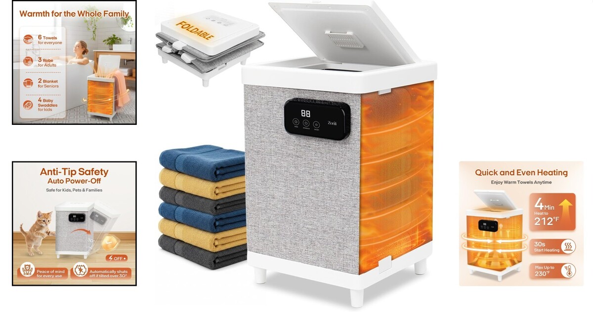Extra-Large 35L Towel Warmer with Rapid Heating & Safety Auto Shut-Off Feature