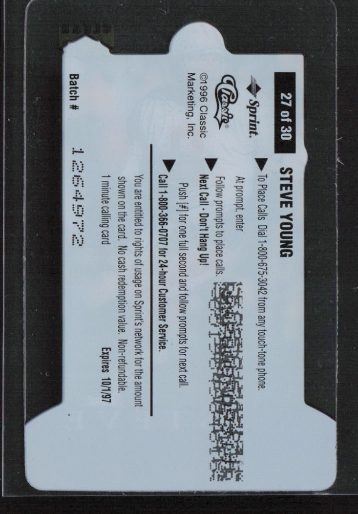 1996 Classic Clear Assets #27 Steve Young Phone Cards $1