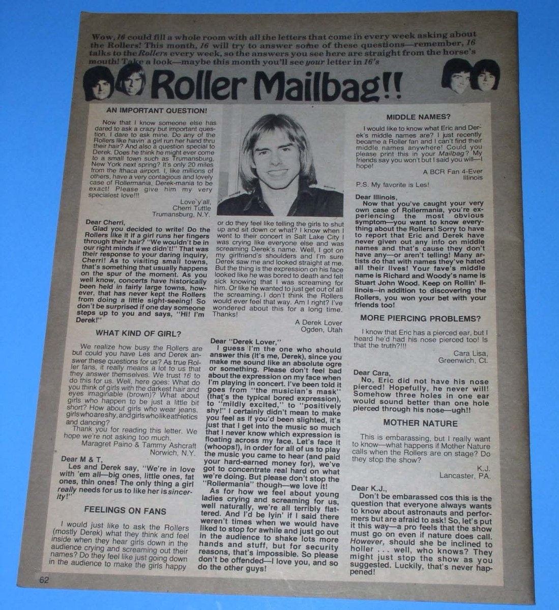 The Bay City Rollers 16 Magazine Photo Clipping Vintage 1978 Roller Mailbag