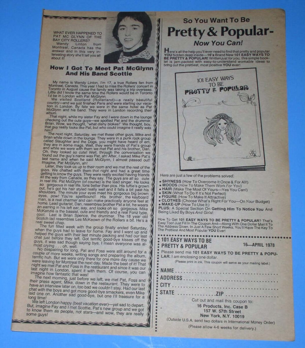 The Bay City Rollers Pat McGlynn 16 Magazine and 50 similar items