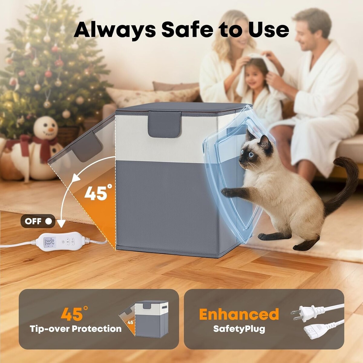 Features: Digital Temperature Control,Auto Shut Off,Waterproof,Foldable Design,360 Surround Heating,Adjustable Thermostat,Timer,Anti-Tilt Protection