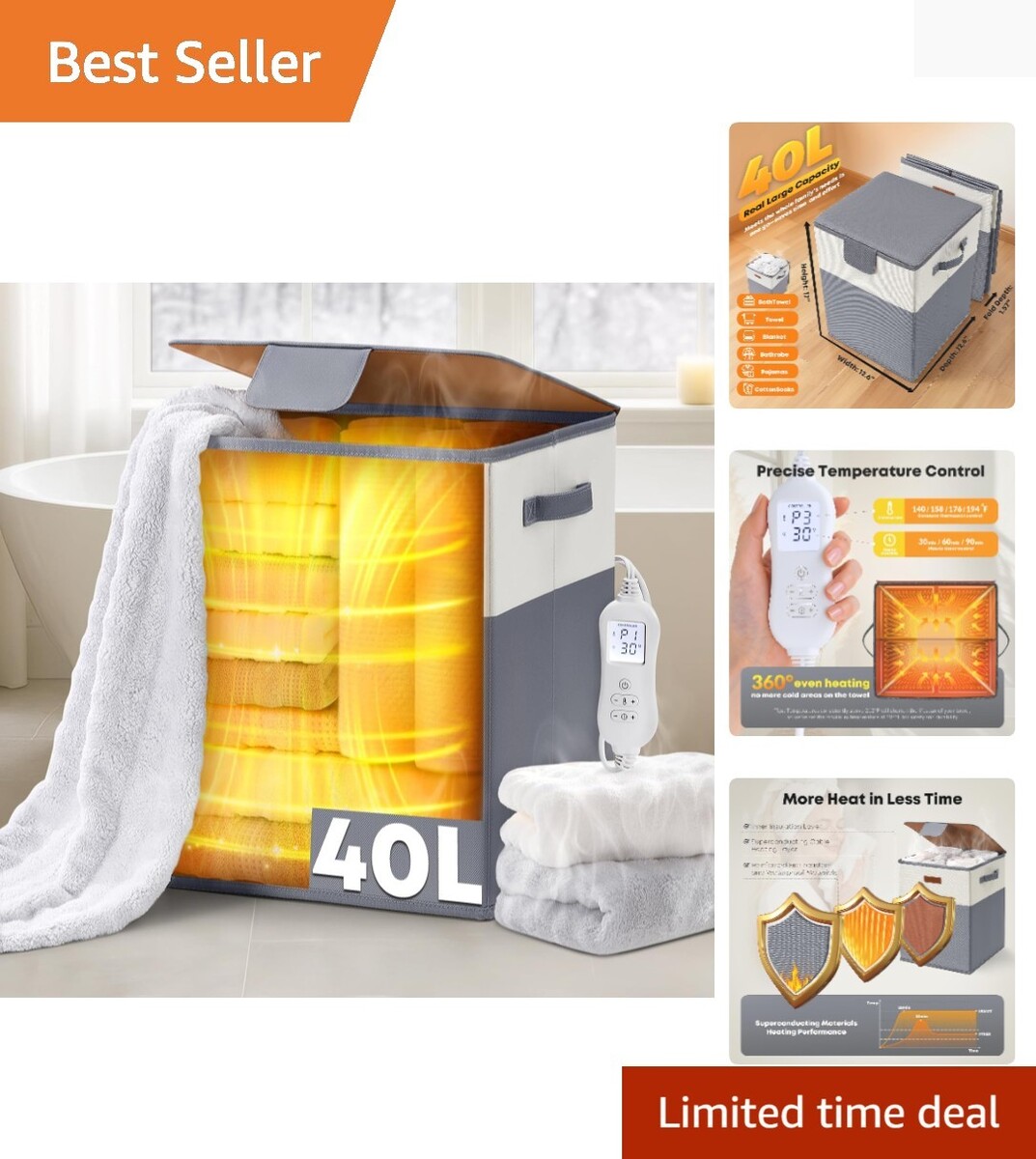 40L Extra Large Capacity: Enjoy the convenience of an oversized capacity?capable of holding multiple bath towels, bathrobes, blankets, and pajamas. Ideal for large households and families.