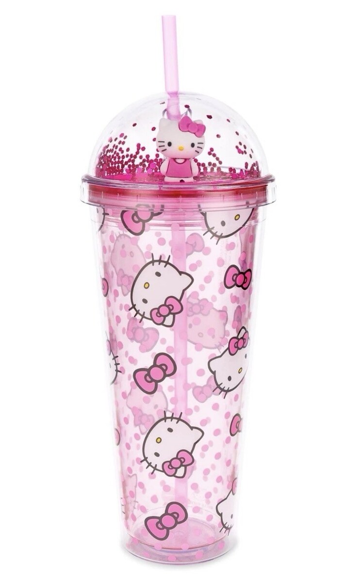 Sanrio Hello Kitty 24 Ounce Confetti Sequin Carnival Cup With Dome Lid and Straw