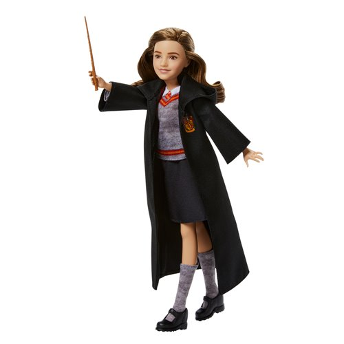 The magic of the Harry Potter films comes to life with this true-to-movie Hermione Granger fashion doll! Hermione wears her signature Hogwarts uniform ? removable robe, shirt, skirt, socks and shoes - featuring the Gryffindor crest and colors. Adventures are sure to arise; good thing Hermione doll comes with her wand to discover the magic. The Hermione doll bends at the arms, head and legs so she's ready for endless play possibilities. Ages 6 and up!