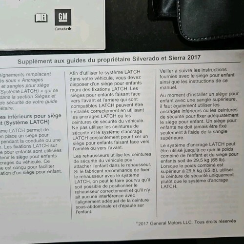 2017 Chevrolet Silverado Owner?s Manual This original factory manual is an essential addition to your vehicle, providing comprehensive information on the operation, maintenance, and care of your car. English manual. English/French version of the Canadian Limited Warranty information and supplement