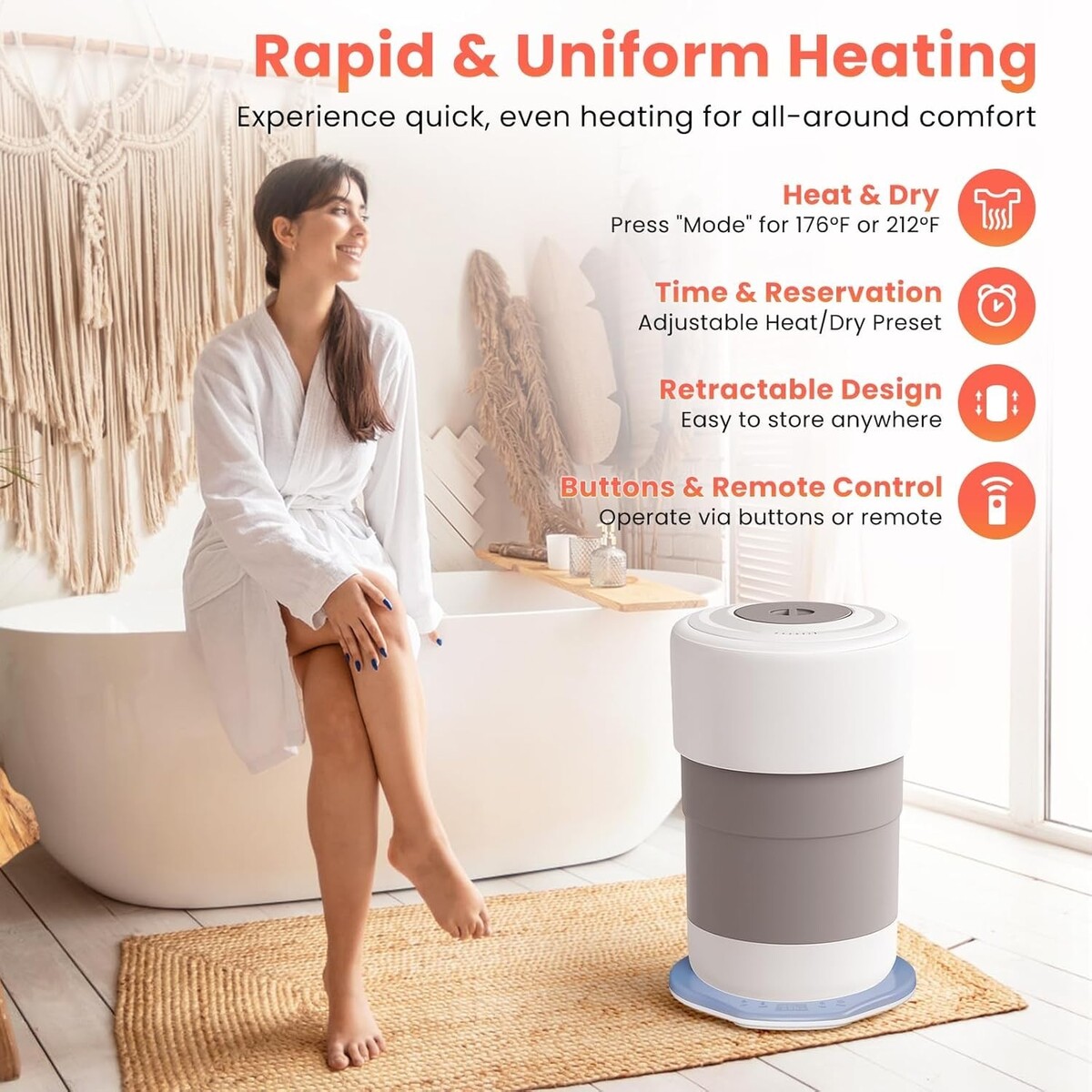 Fast and Even Heating: Select from 176F, 194F, and 212F (displayed as L1, L2, and L3) for tailored warmth. Loosely pile towels for optimal results.