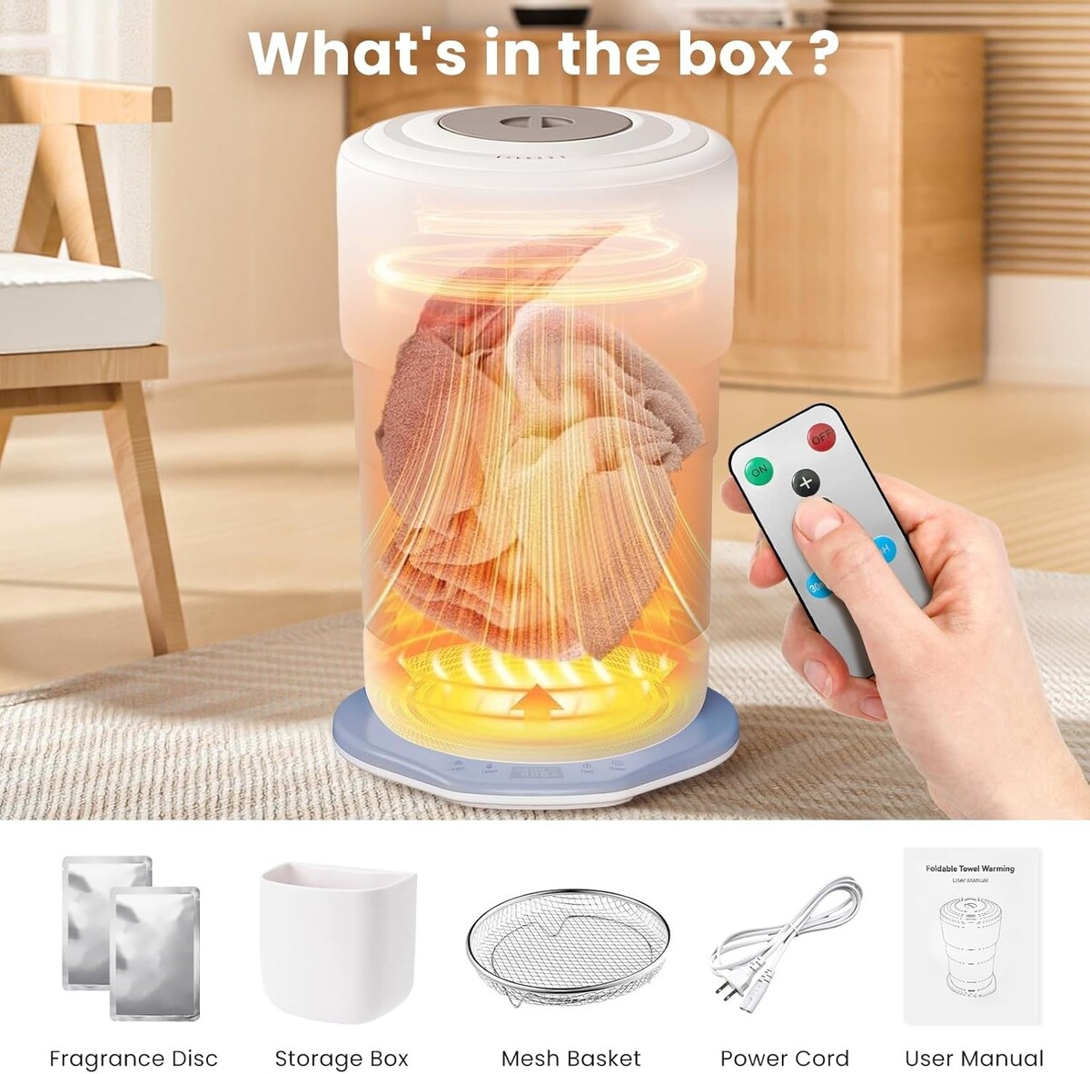 Adjustable Temperature Timer: Features 3 adjustable temperature settings and 3 timer options (30, 60, and 180 minutes) for personalized use. The 0.5-24 hour pre-set function ensures your towels are always ready when you need them.