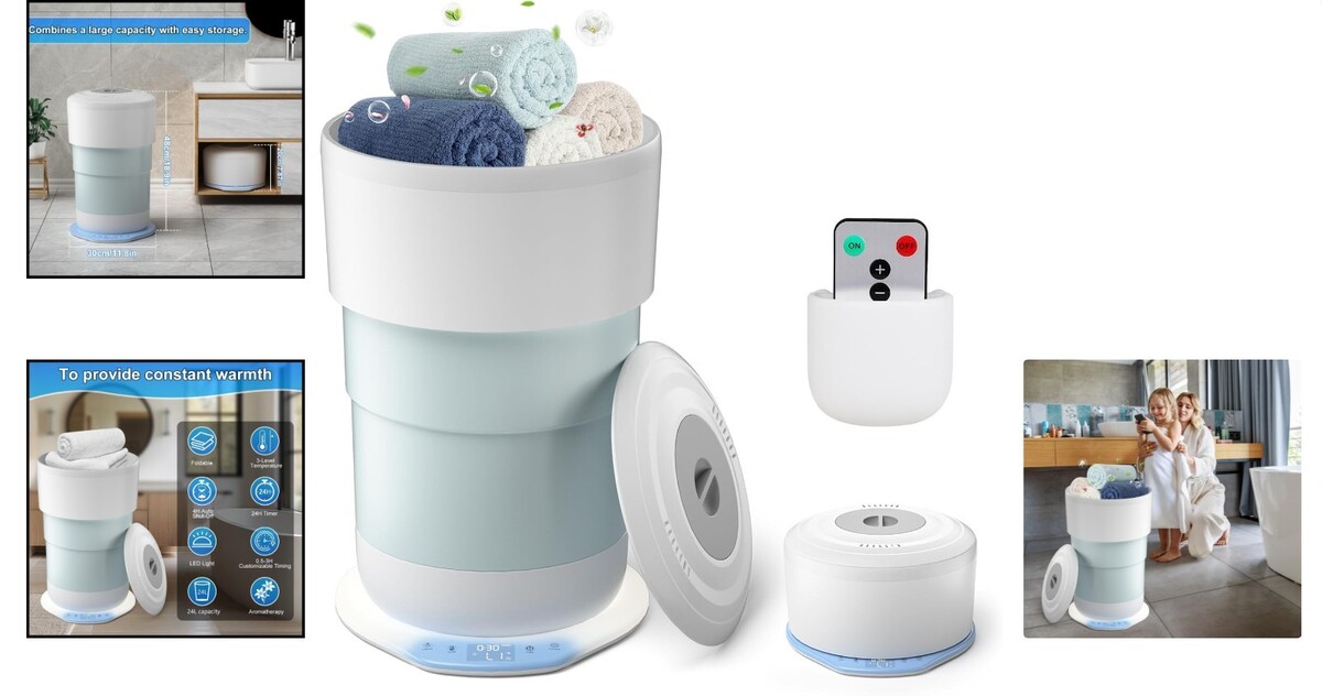 Luxury 24L Foldable Towel Warmer with Remote Control & Timer for Spa-Like Warmth