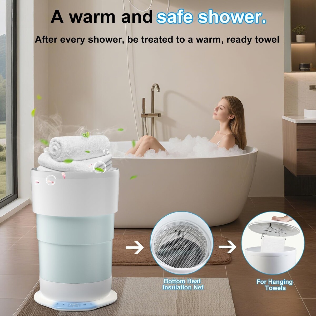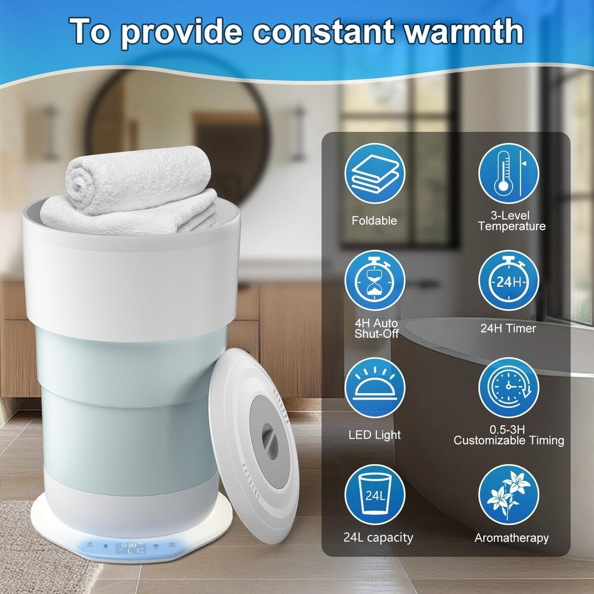 24L Extra-Large Capacity: Spacious design perfect for heating multiple towels, robes, blankets, and pajamas. Ideal for large cotton bath items.