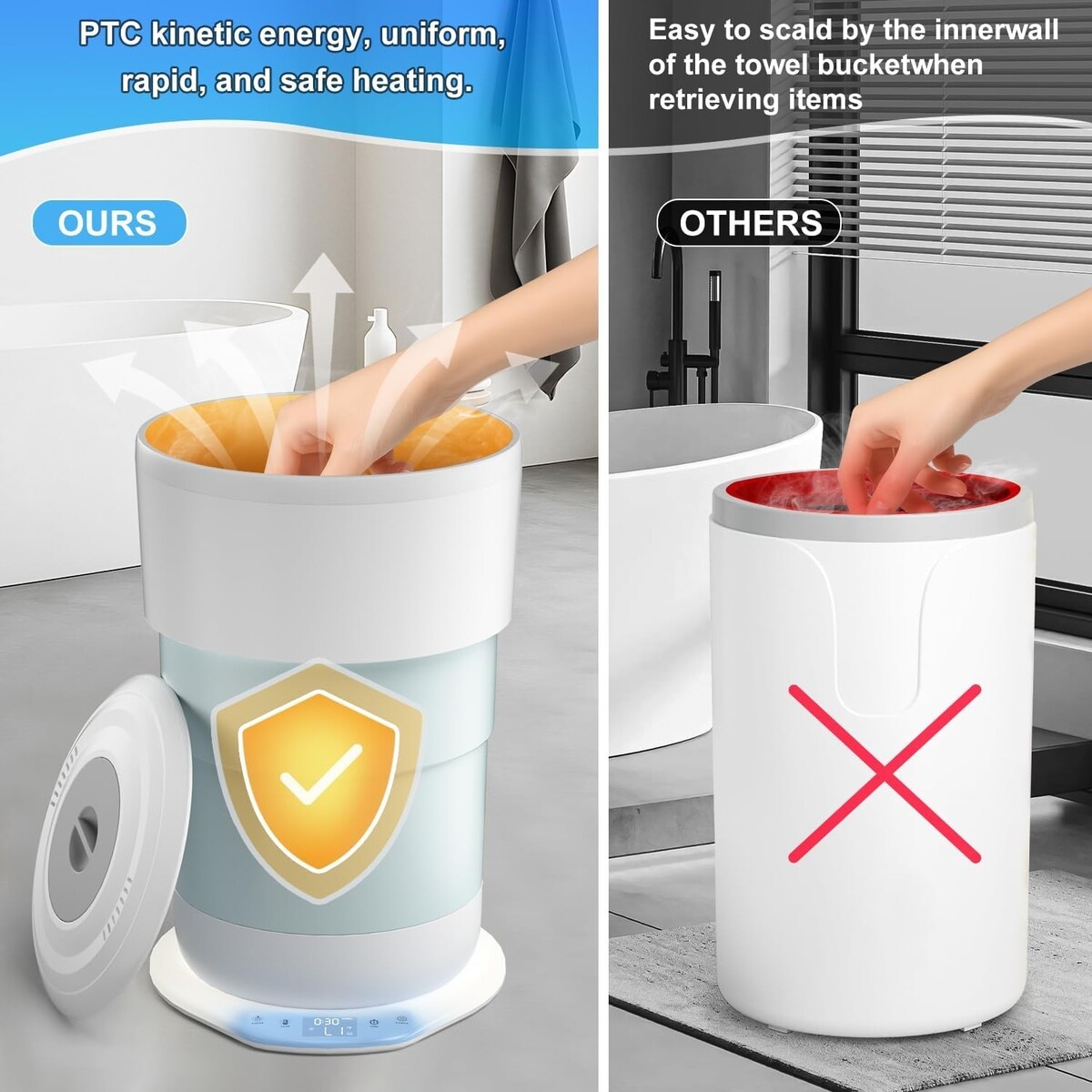 Fast Even Heating: Heats towels in just 5 minutes with 3 adjustable heat levels (176F to 212F), ensuring uniform warmth without cold spots.