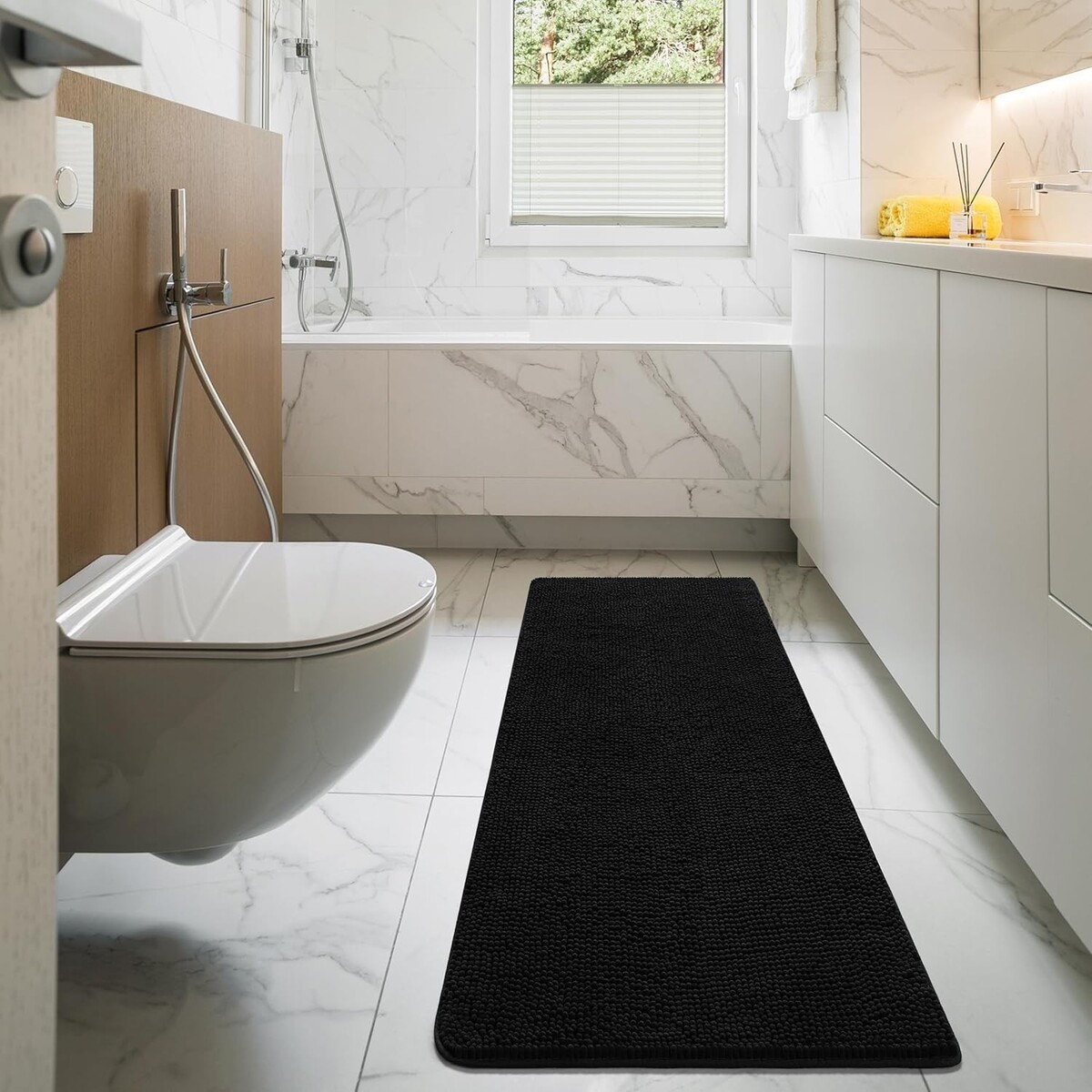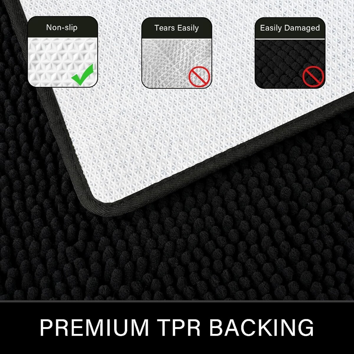 Plush Non-Slip Bathroom Rug 24x60, Stylish Soft Chenille Mat for Shower