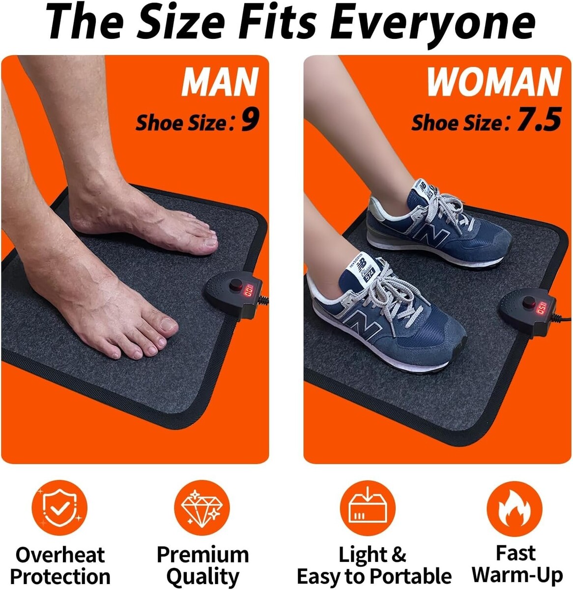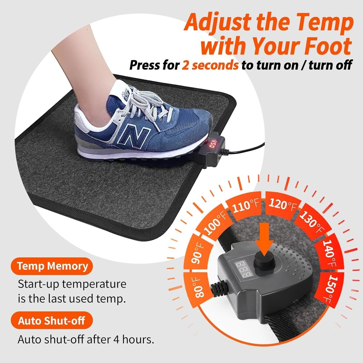 Wider Heated Floor Mat Under Desk - 8 Levels Adjustable Foot Warmer for Comfort