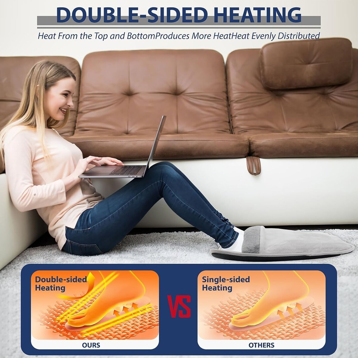 Double-Sided Heating: Experience the ultimate in comfort with soothing warmth enveloping your feet from both sides, perfect for chilly evenings.