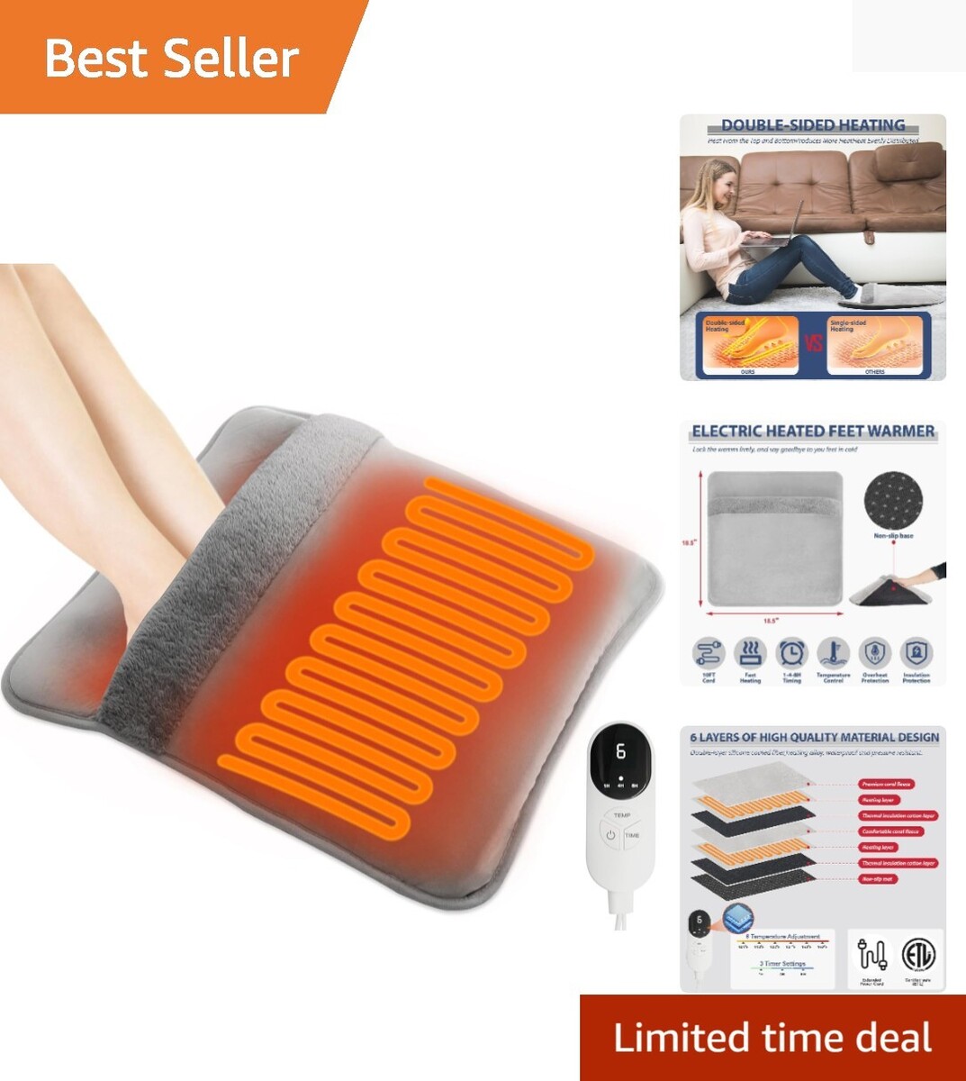 Electric Heated Foot Pad with Double-Sided Heating