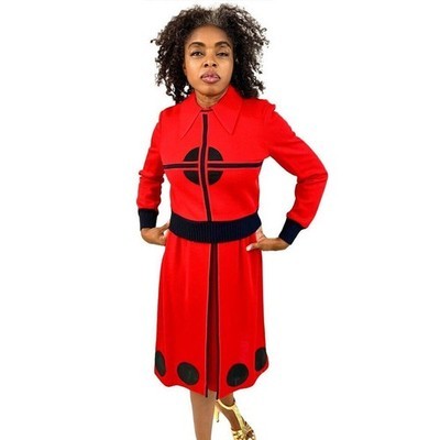 VTG 1970s Bakalli Wool Dress & Sweater Set Leather Applique Mod Geometric M