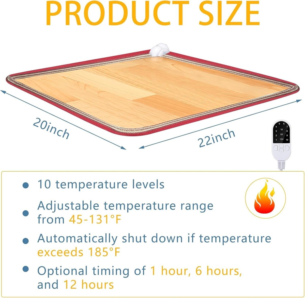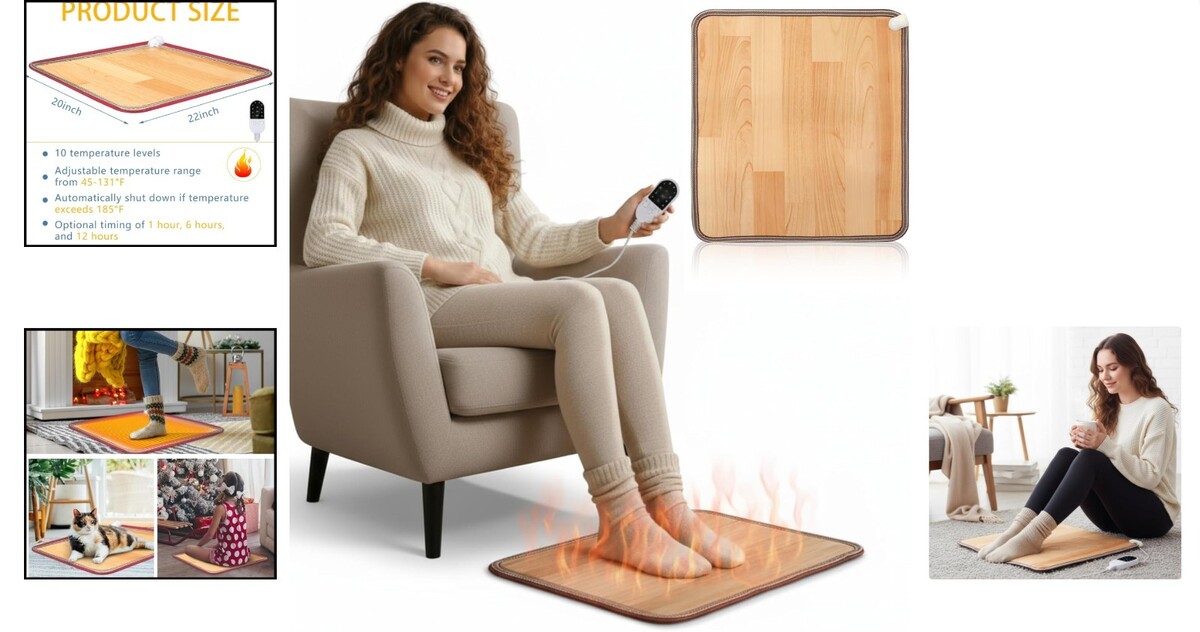 Portable Heated Floor Mat Heater for Comfortable Foot Warmth - 22 x 20 Inches