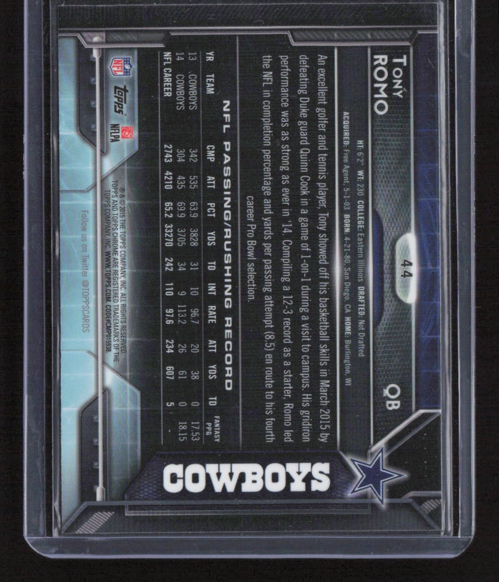 2015 Topps Chrome #44 Tony Romo Green Refractor