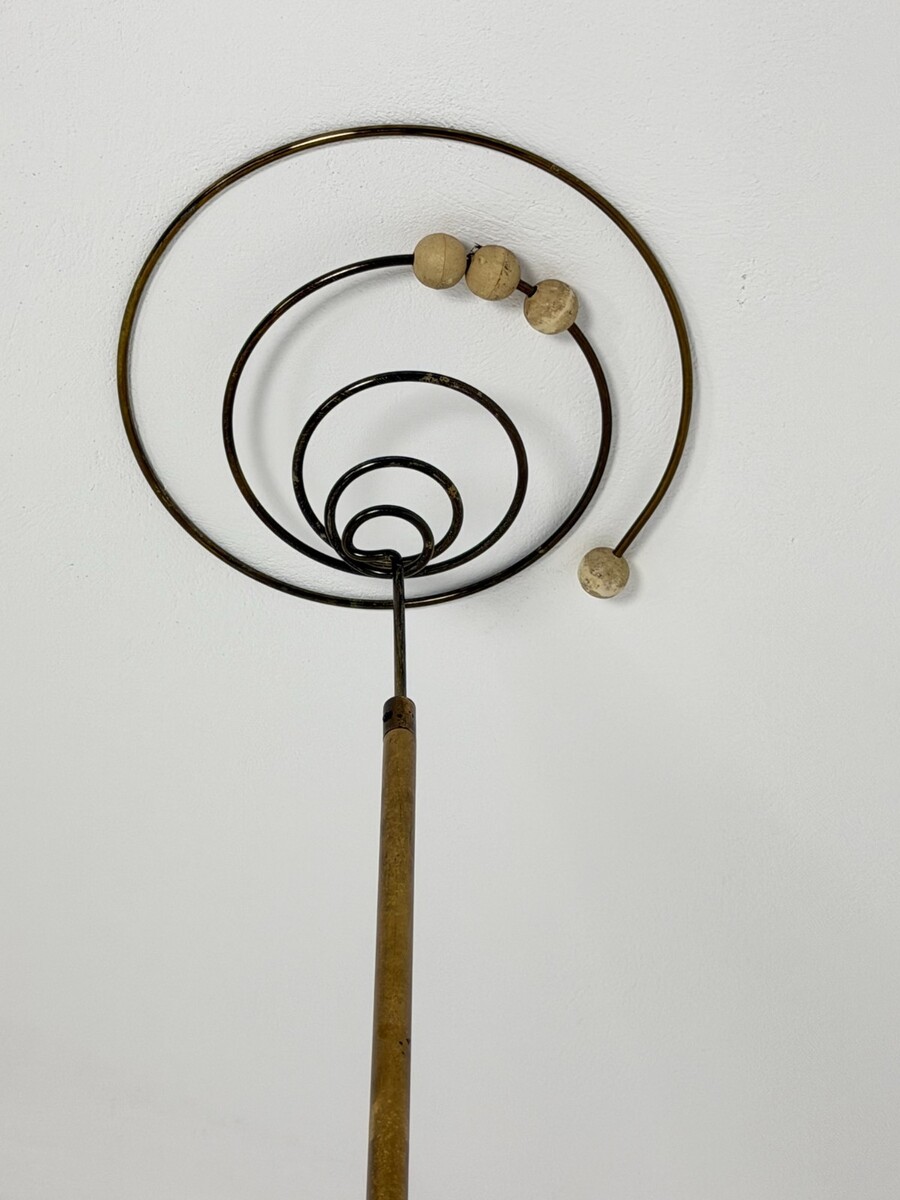 Struttura in metallo, acciaio e ottone, terminali regolabili in altezza, lampade E27.